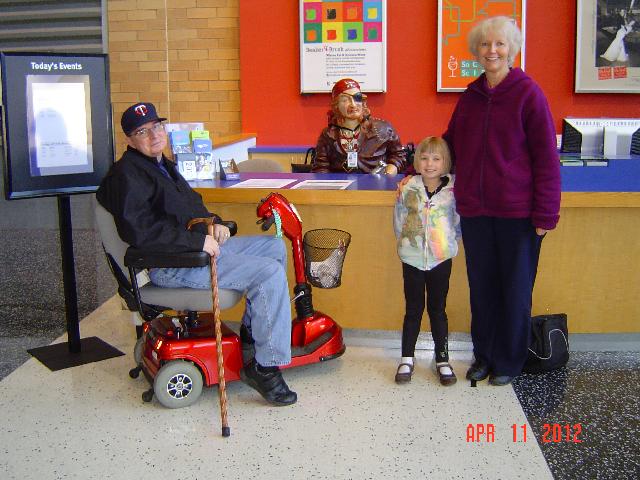 | We also went through the Pirate exhibit. This pirate was helping out at the Information Desk. | |
