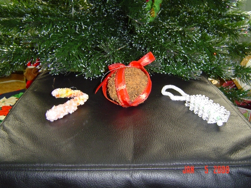 | Christmas tree decorations made by Annabelle and Christie for Grandma and Grandpa | |